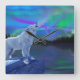 Howling Varg & Aurora Wildlife Art Clock Fyrkantig Klocka