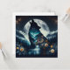 Bild i bild. En varg vid måne med blommigt och vattenfallsbakgrund i bergsområden.