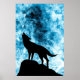 Howling Winter Varg snöblå Abstrakt Poster