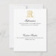 HR monogram eller RH monogram informationskort som följer med monograminbjudningar i guld.