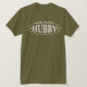Hubba-Hubba Hubby-vintage, tryckt typografi i vit ovalemblem med stjärnor. Humoriserad t-shirt-design ger underbar gåva till brudgummen eller från hustru till make.