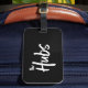 Den här bagageetiketten är utformad för roligt av brudgummen, nylånad man eller säsongsbunden make och har "nav" i vit, handskriven, brushscript-text över en kontrasterande svart bakgrund. Använda den på din smekmånad eller romantiska komma för att lätt upptäcka din väska.