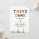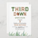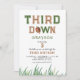 Fotboll 3:e födelsedagsfest inbjudan. Huddle up. Tredje down.