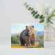 Animal card showing a huge and imposant brown bear in the wilderness. The brown bear (Ursus arctos) is a large bear distributed across much of northern Eurasia and North America.