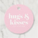 Hugs & kisses rosa, vit modern, fetstil gåvor etiketter
