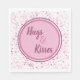 Fira Valentindagen med rosa hjärta glitter. Dessa servetter dekoreras med olika rosor. Heart glitter omger ord "Hugs & Kisses".