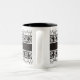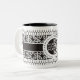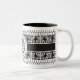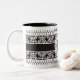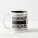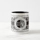 Företags för Hui Tama Nui Polynesian dansproduktion officiella svartvita mugg. Marquesas sockerkäpp och honusnäckamotiv.