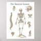 Kroppssystem. Visar skelettet, skallens sidovy, ryggraden, korsbenet, bäckenet, handbenet och foten. Vintage 1894 bilder. Snygg anatomiska konst för ett läkarkontor.
