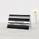 Hälsning-kort med en modern, snyggt, randig design i svartvitt och grått inspirerad av humbug sweets. Kan användas som bakgrund för din egen text, bilder och dina idéer. Skapat med digitala tekniker av Jess Perry.