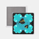 Två färgfulla gulter och svart humla på en söt blomma med en ljusblå bakgrund i lekfull form. En coola är magnet till visningen.