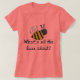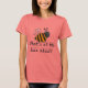 Utformning och ritning av humla med rutt orange och svart, rand text som lyder "Vad är allt det som handlar om?" på söta humla T-tröjor, kort, mugg, klistermärken med mera.