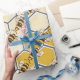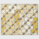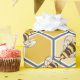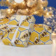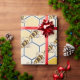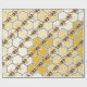 Cute humla hand plockade illustration med guld och gult bikakas bakgrund.