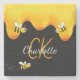 En svart bakgrund och lycklig leende humla. Dekorerad med söt, gyllene honungsdroppar. Anpassa och lägg till ditt namn och monogram initialer, guldfärgat och vitt brev. Namn är skrivet med ett handskript i stil. Perfekt till sommarhemmet!
