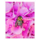 Ett stort bin vilar på en rosa vattenfri blommar.