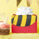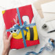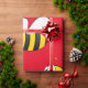 Humla som slår in papper på en röd bakgrund, nobodies som går att missa din gåva!