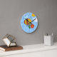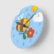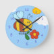 Den gulliga väggen tar tid på för barn, pediatriska kontor, bebisbarnkammare, som presenterar en tecknaddesign av en bumble som vars med ett rött blommaflyg med en blå himmel, moln och solen i bakgrunden.