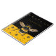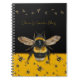 Trädgårds anteckningsbok att anpassa med en titel. Svart och gyllengul, med humlor design. En enda stor bee är med. En rad humlor längs toppen, med fler bin som gör ett mönster över det gula längst ner på omslaget.