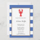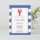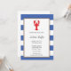 En röd hummer på en blått görar randig gränsen. Ge alla dina gäster en ljus och vänlig påminnelse om din kommande havs- middag med denna vibrerande hummerinbjudan.