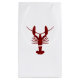 En röd hummer som skrivs ut på en gåva, hänger lös.