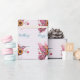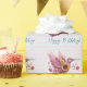 En flygande hummerfågel som är täckt av rosa solblommor, alleys och tulpaner Front: "Grattis på födelsedagen!" hälsning som du kan göra själv.