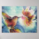 HummingBird and Flower Silke Art Painting Poster