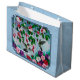 Blandsvansfåglar som flyger, dricker nektar från blommorna i en lätt färgad vår trädgård fylld med lila, rött, vitt och rosa fuchsias och petunias. Realistiskt konstnärligt verk skapat från en ursprunglig oljemålning av naturkonstnären Crista S. Forest.