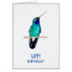 Söt födelsedagskort med en bucklad hummingbird. Tom inuti. Den breda Hummingbird är en påfallande färglös fågel från Nordamerika och Mexiko.