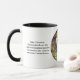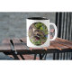 Hummingbird Coffee Kopp med uppgifter om roligt om Ruby-Throated Hummingbird och ett foto av en kvinnlig Ruby-Throated Hummingbird som tagits av Audrey Wenzler från Audrey's Creations.