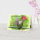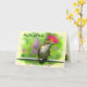Det här Día del Padre-kortet har en ung ruby-throated hummingbird. Han har ännu inte utvecklat ruby-färgningen på halsen. Han är sitta vid metall pub, redo att dyka in i nektar från blommorna som omger honom. Bakgrunden är en mjuk, underbar palett av rosa, rött, guld, gult och grönt. Fler hummerfåglar finns inne. All text kan anpassas efter dina behov i kostym.