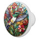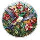 "Hummingbird", "grönt humming bird", "Red blommor blommigt", "nedfläckad glass stil art", "fläckglaspärling", "vackra djur under flygning", "söt som flyger över vingar".