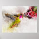 Hummingbird-flygning med blomman Vattenfärg - 04 Poster