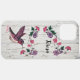 Anpassa den här unika "en av ett slag" Hummingbird iphone case! Den har en dålig hummingbird Sipping Nectar från stor Rosa & Lila blommor .....på en Stressat Wood Background! Original Fine Art Painting by Artist Kerry Miller.