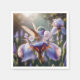 En pulserande hummerfågel badar i en iris-blommar som piskar vatten droppar i en solbelyst trädgård