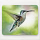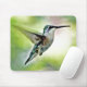 Den här musmattan har en nära bild av en hovande hummingbird med mjuk, färgstark bakgrund.