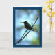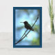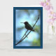 Detta noterar kortsärdrag som en mycket liten hummingbird silhouetted mot en lysande blå himmel.