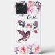 Anpassa den här unika "en av ett slag" Hummingbird iphone case! Den har en dålig hummingbird Sipping Nectar från stor Rosa & Lila blommor ...om en vacker vit, Rosa och Lila Blommigt - bakgrund! Original Fine Art Painting by Artist Kerry Miller. Njut!