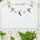 Kökshandduk för hummingbird älskare som innehåller en andedräkt av flera arter av tropiska hummerfåglar, t.ex. samvet-lila Coronet Hummingbird, White-necked Jacobin, Golden-tailed Sapphire, Fiery-throated, Mango Hummingbird och citatet "Tiden för att se på hummingbird är aldrig slösat". All bilder som hämtats från ursprungliga vattenfärgsmålningar av Christiane Dobbins.