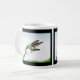 Bilden på detta mugg skildrar en hummingbird när hon sträcker sig för nektar i en blomma. Den snabba slutartiden har frusit vingar överst i bågen.
