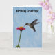 Det här charmeringskortet innehåller min originalteckning, som består av mitt originalfoto av en hummingbird som stannar för att få söt nektar från en Zinnia-blomma. Jag använde en vattenfärgspainterlyteknik för att göra ge till ett konstnärligt fläkt. På kortets framsida, stater, "Birthday Greetings!" och på insidan av kortet stater "Jag hummmar födelsedagen sång för dig och hoppas att din dag är fullt av ljuva minnen! Grattis på födelsedagen!" Ett underbart kort för vilken fågel som helst älskare.
