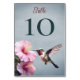 Hummingbird och Hibiscus | Blå Bröllop Bordsnummer