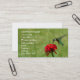 Visitkortar med en härlig ruby-throated hummingbird som matar på en röd zinnia med en grön bakgrund. Underbar gåva för en fågelälskare! Digital fotografi vid Sue Melvin