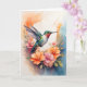 Hummingbird omgiven av vackra blommor. Blanka hälsningskort för födelsedag, årsdag, nyfödd bebis, tack, sympati osv.