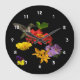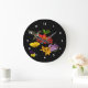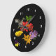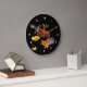 Den här färgstarka, viskösa väggklockan har en ruby-throated hummingbird som besöker ett sortiment av trädgårdsblommor: röd och gult zink, golden lilies, lila cranesbill geraniums och en liten johnny-hoppupingviola. Alla avmarkeras med en ren svart bakgrund. Det här skulle vara perfektens gåva till en trädgårdsmästare!