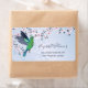 This girly shiny business card features a green hummingbird with dusky pink cherry blossoms on a shimmering background.