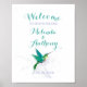 Det vackra Bröllop-tecknet i anpassade har ett känsligt silver-grått-snurrande mönster med en färgad av teal och turkos, hummingbird art-design som ge är en mjuk romantisk känsla med en liten vintage men contemporary modern stil. Om du tittar dig för ett fågeltema eller ett trädgårdstema i bröllop passar den här hummerfågeldesignen bra.