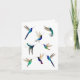 Kortet innehåller flera tropiska hummerfåglar, t.ex. samvet-lila Coronet Hummingbird, White-necked Jacobin, Golden-tailed Sapphire, Fiery-throated and Svälj-tailed Hummingbird. Bilder som hämtats från ursprungliga vattenfärgsmålningar av Christiane Dobbins.. Insidan lämnas tom för ditt eget handskrivna meddelande.