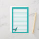 En fodrad stationär papper som dekoreras med en hummingbird som dras med bläck och som målas i skader av emerald grönt och blå vattenfärg med en tårblått gräns. Underbar för brev-skrivning, påminnelser, journalföring med mera.