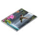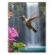 Bild av övertäckningen framför ett vattenfall är en hummelfågel på dess sätt att suga upp lite nät från blommor i närheten.