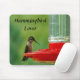Mousepad med ett porträtt av en kvinnlig ruby-throated hummingbirdsitta på en röd förlagematare. Underbar gåva för en fågelälskare! Digital fotografi vid Sue Melvin