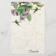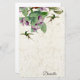 Ursnygg collage av botanisk konst för vintage av exotiska Hummingbirdfåglar och purpurfärgade blommor för Ladys häftklammermatareOrchid och handflatanlöv, med en bakgrund av handgjort papper för fauxen, är på denna brevpapper för Hummingbirdfågelorchiden. Image är det förföll offentliga området tar copyrightt på tack vare. Collage är vid mig.